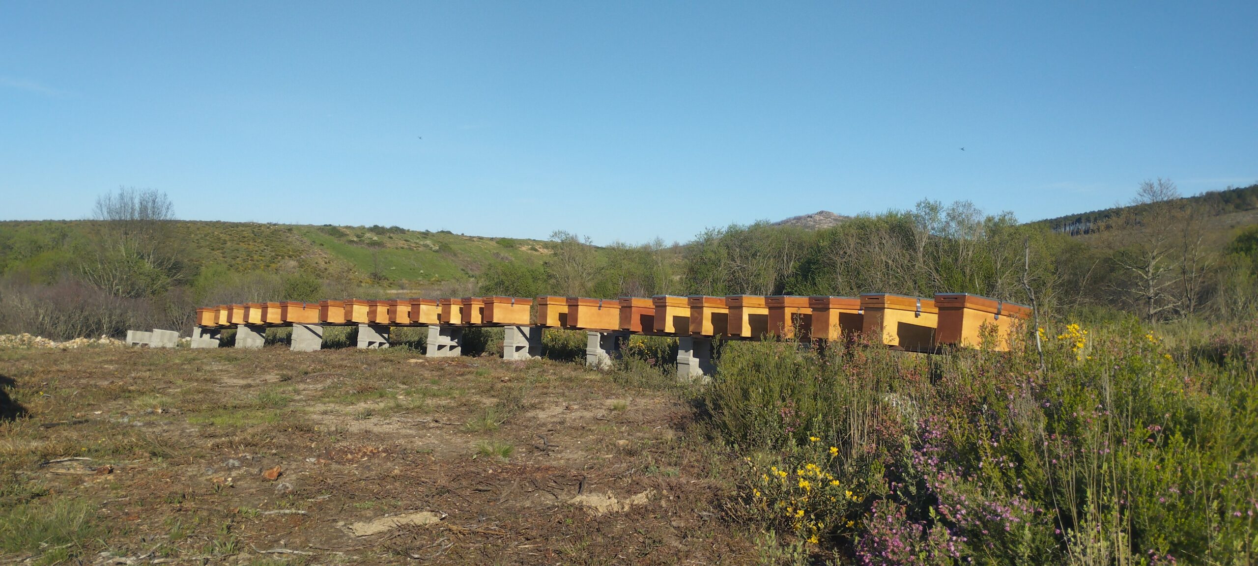 Elegimos cuidadosamente cada asentamiento, buscando espacios donde las abejas puedan recolectar néctar y polen exclusivamente de fuentes naturales y silvestres. Aquí, la floración viene marcada por el monte y las estaciones, no por la intervención humana.